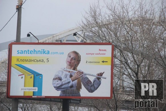 Сайт сантехніки не знайшов нічого кращого, як розмістити на біллбоді дівчину із сопілкою. Судячи зі слогану, "тепло" від радіатарів, які важко розгледити на рекламі, "надихає" дівчину на гру. Втім, текст слогану написаний таким дрібним шрифтом, що водіїї, які проїзджають, не встигають його прочитати. Зате вони встигають помітити дівчину, яка не зрозуміло що робить на борді, де зазначено сайт продажу сантехніки.