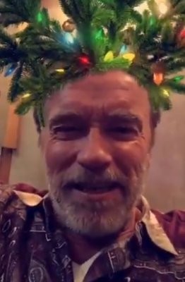 68-річний віце-губернатор штату Каліфорнія привітав свої читачів у мережі Facebook з наступаючими різдвяними канікулами записавши короткий ролик. З допомогою спеціального додатку в телефоні, голову залізного Арні прикрасив ялинковий вінок з бенгальськими вогнями. Відео за годину вже набрало півмільйона переглядів.