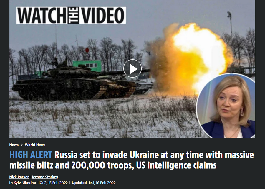 Британська газета The Sun, яка напередодні повідомила, що Росія вторгнеться в Україну о 3:00 за Києвом 16 лютого, переписала статтю. Тепер замість вказаного часу зазначається, що ніч минула спокійно.