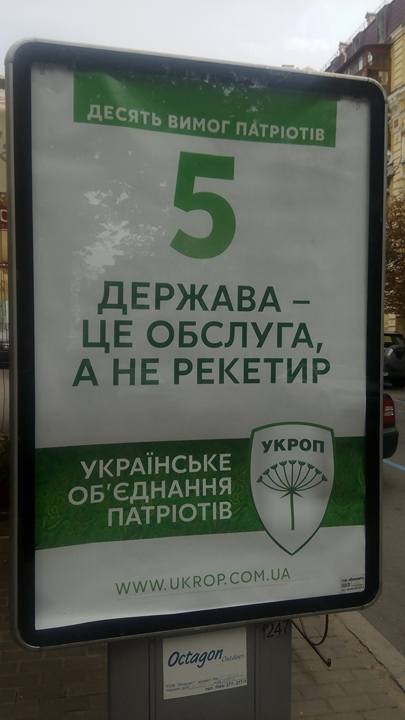 "Держава - це обслуга, а не рекетир", - говоритьтся на столичних сітілайтах.