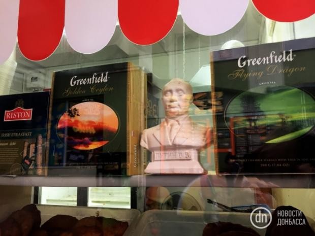 У мережі опубліковані фото з окупованого бойовиками Донецька, в якому підприємливі бізнесмени рекламують біляші за допомогою скульптури президента РФ Володимира Путіна. Про це повідомляють "Новости Донбасса".