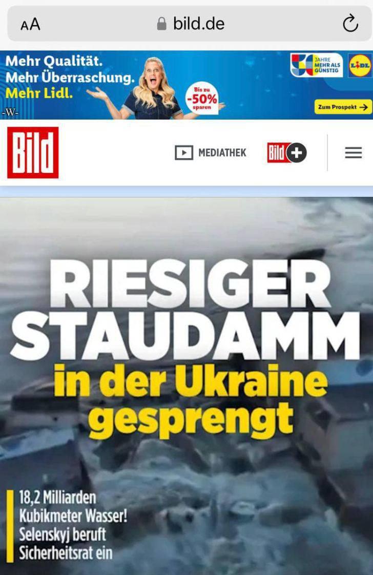 Німецьке видання Bild потрапило у гучний скандал: вони прибрали згадку про росію з обкладинки про теракт на ГЕС