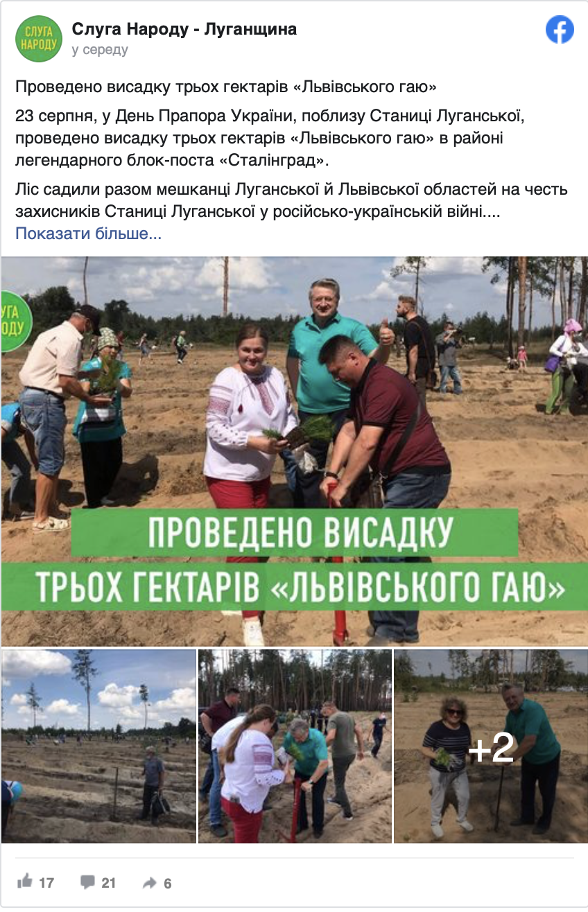 Допис, який розмістили луганські "слуги" в соцмережі, створює враження, ніби висадження "Львівського гаю" – це ініціатива партії Зеленського.