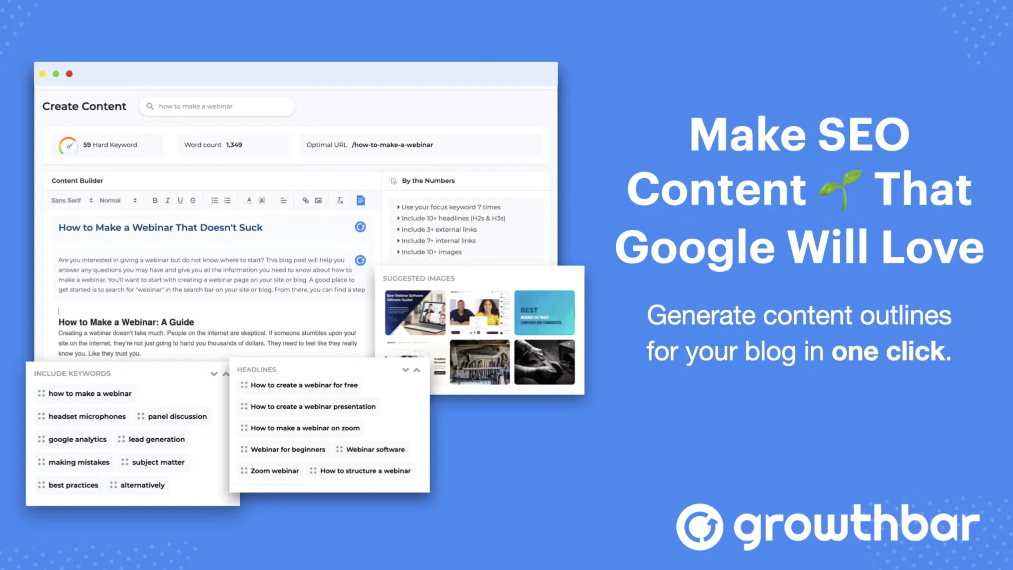 Використання технології GPT-3 OpenAI підіймає планку для створення контенту. Процес створення матеріалу спрощується за допомогою цієї геніальної програми, яка пропонує ключові слова, встановлює обмеження на кількість слів, надає посилання та фотографії тощо. У двох словах, ви миттєво отримуєте високоякісний матеріал, оптимізований для пошукових систем. Складні шаблони структури GrowthBar і функції зворотних посилань спрощують створення бездоганного вмісту.