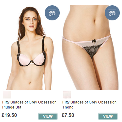 Бренд F&F, ритейлер одежды супермаркетов Tesco, подарил своим клиентам скидку в 25% на линию нижнего белья 50 Shades of Grey. Автор романа, Э.Л.Джеймс, одобрила модели, сказав, что их удобно носить под одеждой и показать в нужный момент.