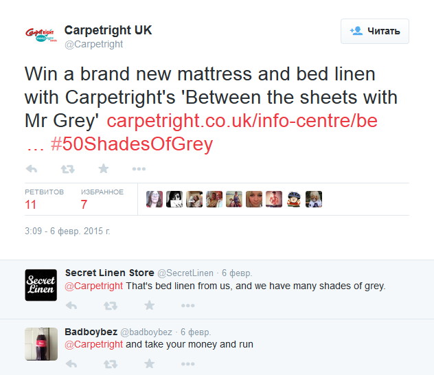 Компания Carpetright's предоставила пользователям соцсетей шанс выиграть новый матрас и комплект постельного белья, предположив, что многим могут потребоваться эти предметы после попытки воссоздать сцены фильма.