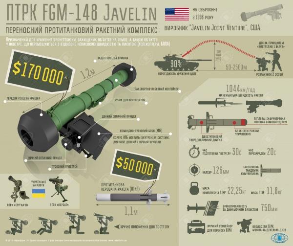 «Система Javelin поможет Украине построить свой долговременный потенциал обороны для защиты своего суверенитета и территориальной целостности, чтобы соответствовать требованиям национальной обороны», – подчеркнули там.
