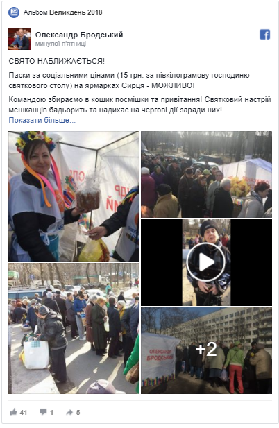 Але, судячи з розмаху, вийшло чимало. Бо вже через два дні Бродський сповістив про наявність його пасок на ярмарках Сирця. З легкої руки депутата, продавали великодню випічку за соціальними цінами – по 15 гривень.