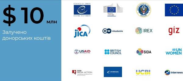 7. European Union, German Federal Foreign Office надав €6 250 000 (загальна сума проекту за весь період 2016 – 2020) на проект МТД «Підтримка Національного суспільного мовника України» (побудова мультимедійного ньюзхаусу – створення та підтримка Академії Суспільного мовлення). Реалізовується Deutsche Welle Akademie, BBC Media Action та NIRAS.