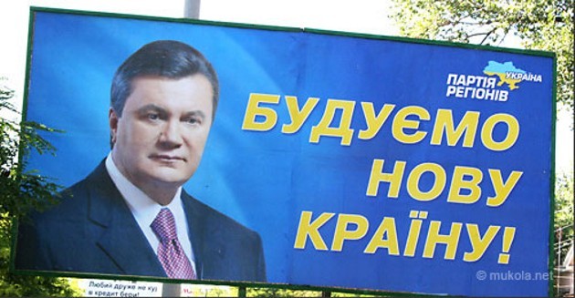 Что касается кандидата в Президенты Михаила Добкина, раз уж заговорили о Януковиче, то он ничего и ни у кого не **издил. Остался верен традиционным бордам Партии регионов, вот только теперь кандидат от Партии, обещает "Единую страну". Судя по тому, что ни одного неиспорченного борда "регионала" найти практически нереально, украинцы еще не высказали все свое "спасибо" за строительство "Новой".