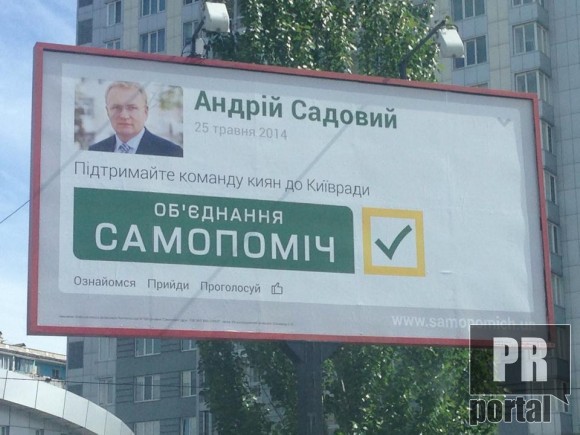 Отличились "криэйторы" и на местно-киевской агитнаружке. На одном из бордов, "команда киевлян в Киевсовет" представлена лицом... львовской национальности! Только очень настырный изибратель докопается, что уроженец и мэр Львова Андрей Садовый, хоть и является председателем политической партии "Объединение Самопомощь", сам, собственно, на "киевлянина" - не претендует, и "на Киев" не выдвигается (пока).