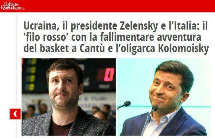 Утім, деякі видання таки присвятили дещо більше уваги київським подіям. Так, відоме видання “Il Fatto Quotidiano” відреагувало на обрання Зеленського досить оригінальним чином — опублікувавши журналістське розслідування щодо його майна та зв'язків на Апеннінах під заголовком "Україна, президент Зеленський та Італія: "червона нитка" з провальною пригодою баскетболу в Канту і олігарх Коломойський".