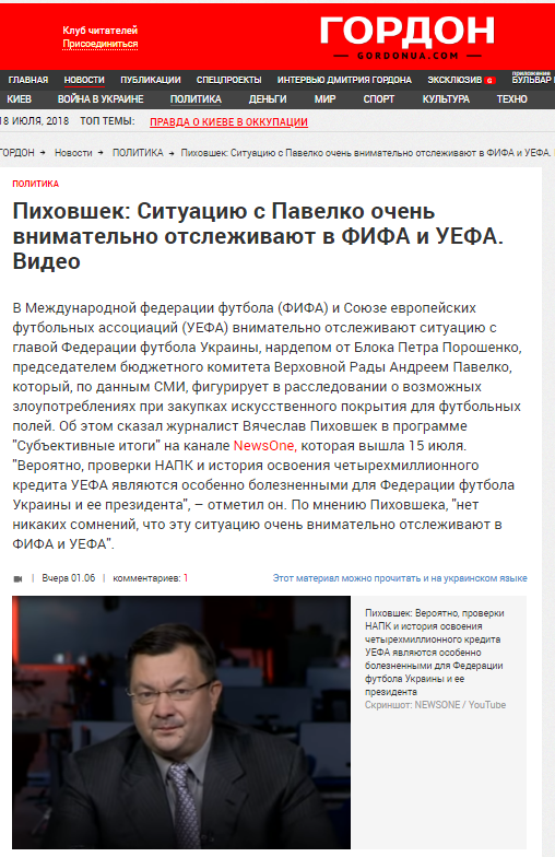 Та от же! Після того як хорватські футболісти Домагой Віда і Огнен Вукоєвич вигукнули «Слава Україні!», та коли на них за те визвірилася ФІФА – Вукоєвич був відсторонений від складу хорватської делегації на ЧС в Росії. Андрій Павелко тоді виступив з ініціативою компенсувати Вукоєвичу штраф і працевлаштувати його в Україні. І зразу ж нарвався на обурення віце-президента УЄФА Григорія Суркіса. Суркіс заявив, що не можна підтримувати хорватських футболістів, бо от не можна псувати стосунки з УЄФА. Мовляв, плюнули вам-українці в душу – розслабляйтеся і насолоджуйтеся, стосунки з ФІФА важливіші за вашу скривджену національну гордість. Григорій Суркіс в минулому - бізнес-партнер Віктора Медведчука.