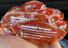 Голова Копичинецької громади, що на Чортківщині, Богдан Келічавий оригінально підійшов до виготовлення власних візиток. Замість звичайний паперових держслужбовець виготовив оригінальні візитки із в’яленого м’яса.