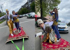 Патрульні оштрафували водія, який буксував перевдягнену у Жасмін та Аладіна пару на споруді, що нагадує килим-літак, вулицями Харкова.