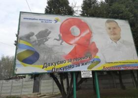 Депутат облради від партії кума Путіна Медведчука повісив у Житомирі вітальні білборди з нагоди 9 травня, на яких зображені солдати гітлеровської Німеччини, а під ними напис "Дякуємо за перемогу", повідомляє "20 хвилин. Житомир"