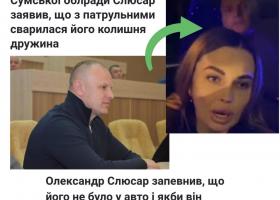 Депутат Сумської облради від ПП "Слуга народу" Слюсар сьогодні поширював заяву, що поліцейським хамила і посилала їх в Бахмут його колишня, з якою він розведений.