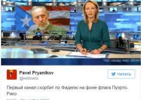 Журналісти російського Першого каналу повідомили про смерть колишнього президента Куби і лідера революції Фіделя Кастро, розмістивши на тлі прапор Пуерто-Ріко.