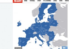 В соцсетях высмеяли публикацию британским таблоидом The Sun политической карты со странами-членами Европейского Союза, на которой Беларусь была отмечена как часть ЕС.
