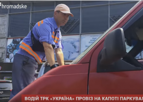 У Києві водій мікроавтобуса ТРК "Україна" провіз на капоті паркувальника.