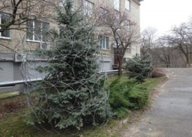 В соцсети появились фотографии, на которых сотрудники ботанического сада Южного федерального университета довольно креативно украсили ёлки вокруг своего главного здания: на вечнозелёные деревья вместо гирлянд надели колючую проволоку.