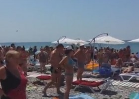 Гімн РФ слухають відвідувачі курортного району Лазаревське.