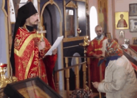 Социальные сети взбудоражило видео, на котором священник Русской православной церкви возле алтаря публично исполнил песню "Товарищ время" из советского фильма "Как закалялась сталь".
