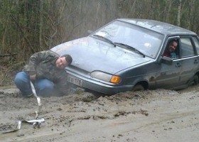 У Карелії в Росії кілька машин-учасників автопробігу, присвяченому святкуванню 70-ї річниці Дня Перемоги, застрягли у багнюці.