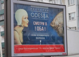Київський ресторан вирішив продемонструвати креатив і розмістив рекламу з написом "смотри в оба".