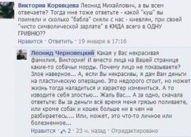 Екс-мер Києва Леонід Черновецький, який не так давно завів офіційну сторінку у соцмережі Facebook, продовжує сваритися з користувачами. Так, нещодавно він назвав "негарною" користувачку Вікторію Корявцеву, яка запитала в нього, скільки грошей він заробив, коли був столичним мером.