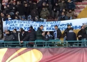 Під час першого матчу 1/8 фіналу Ліги Європи "Наполі" - "Динамо" Москва (3:1) вболівальники господарів вивісили банер на підтримку України.