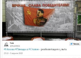 На улице Плющиха в центре Москвы повесили баннер изображением Иосифа Сталина и надписью «Вечная слава победителям!». Об этом в четверг, 9 апреля, сообщает «Интерфакс».