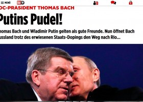 Німецьке видання Bild назвало голови Міжнародного олімпійського комітету Томаса Баха "пуделем Путіна" у відповідь на рішення МОК не відстороняти збірну Росії від участі в Олімпійських іграх-2016.