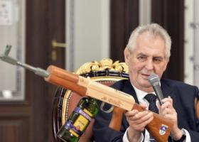 Президент Чехії Мілош Земан під час прес-конференції продемонстрував муляж автомата з написом «для журналістів» на ньому.
