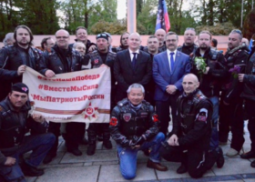 Гейтман (голова) Південноморавського краю Чехії Міхал Гашек разом з байкерами російського клубу “Нічні вовки” поклав квіти до пам’ятника воїнам Червоної армії у місті Брно.