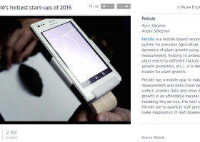 Стартап Petiole, основанный украинцем Андреем Селезневым, попал в топ-20 самых ярких идей 2015 года по версии американского бизнес-телеканала CNBC. Приложение позволяет измерять площадь поверхности листьев — такие данные необходимы для выращивания разных агрокультур.