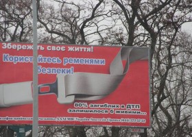 На трасах Київщини ДАІ закиликає водіїв користуватися пасками безпеки. Визуалізація далека вид креативу. Єдине, що має змусити водіїв пристебнутися статистика про те, що "80% загиблих у ДТП могли б залишитися живими"