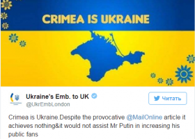 Українське посольство у Великобританії називає провокативним статтю британського таблоіда Daily Mail, який назвав незаконно окупований росіянами Крим частиною РФ.