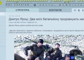 На сайте Нацгвардии появилось и исчезло сообщение якобы от имени Дмитрия Яроша, где утверждалось, что два "его батальона" ведут наступление под Дебальцево.