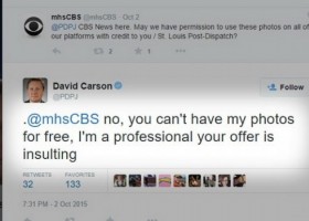 У лауреата Пулітцерівської премії Девіда Карсона (David Carson) в Twitter попросили дозволу на публікацію його знімків в обмін на посилання на автора.
