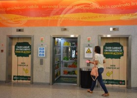 Danone забрендировала кабину лифта в португальском торговом центре под холодильник с йогуртами «Активиа», а LG подарит настоящий холодильник тому, кто сделает лучшее селфи на этом фоне.