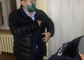 Председатель криворожского теризбиркома Павла Гивеля облили зеленкой. Фото опубликовал в своем Фейсбуке начальник КШМ в батальоне "Донбасс" Евгений Шевченко.