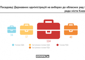 На виборах депутатів обласних рад кандидатами стали 16 голів обласних державних адміністрацій. Усі голови облдержадміністрацій були висунуті кандидатами в депутати обласних рад місцевими організаціями політичної партії «Блок Петра Порошенка «Солідарність».