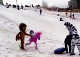 Люди, переодетые в костюмы персонажей мультфильмов, избили мужчину, который пытался открутить голову "зебре".