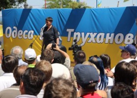 В Одесі нардепа від "Батьківщини" Надію Савченко намагалися закидати яйцями під час виступу перед учасниками протесту на Думській площі.