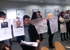 Українські патріоти у Брюсселі висловили протест під час заходу за участю народного депутата України, члена фракції «Опозиційний блок» Нестора Шуфрича