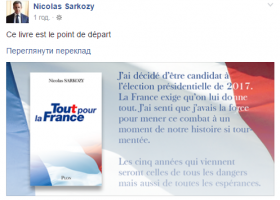 Під час виборчої кампанії на пост глави «Союзу за народний рух» (Union pour un mouvement populaire) в оточенні екс-президента Франції пообіцяли, що на мільйонного підписника сторінки Ніколя Саркозі очікує сюрприз.