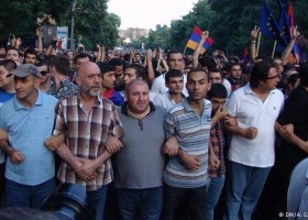 Участники длящейся уже несколько дней в Армении акции протеста против роста цен на электроэнергию раздают в Ереване листовки с текстом Присоединись к борьбе из дома.