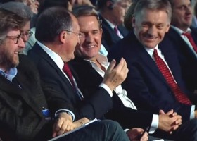 Один з українських учасників гуманітарної підгрупи на переговорах у Мінську Віктор Медведчук у четвер перебував на засіданні міжнародного дискусійного клубу "Валдай" в Сочі, де слухав виступ президента РФ Володимира Путіна.