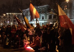 Граждане Литвы, Латвии и Эстонии устроили одновременные акции солидарности возле дипломатических представительств Украины.